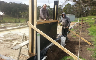 In the last few weeks at Hare Krishna Valley we have been preparing to construct the rammed earth walls on the new cow barn. Manigriva and his team will begin to build the walls in