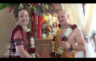 I celebrated my marriage to Atulya at Hare Krishna Valley last weekend. Although it was hot outside, inside the Temple it felt cool and calm. Around 170 guests attended to give us their blessings on